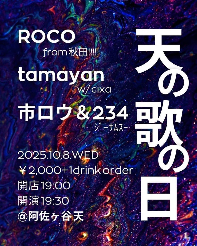 open 19:00 / start 19:30 / ¥2,000+オーダー